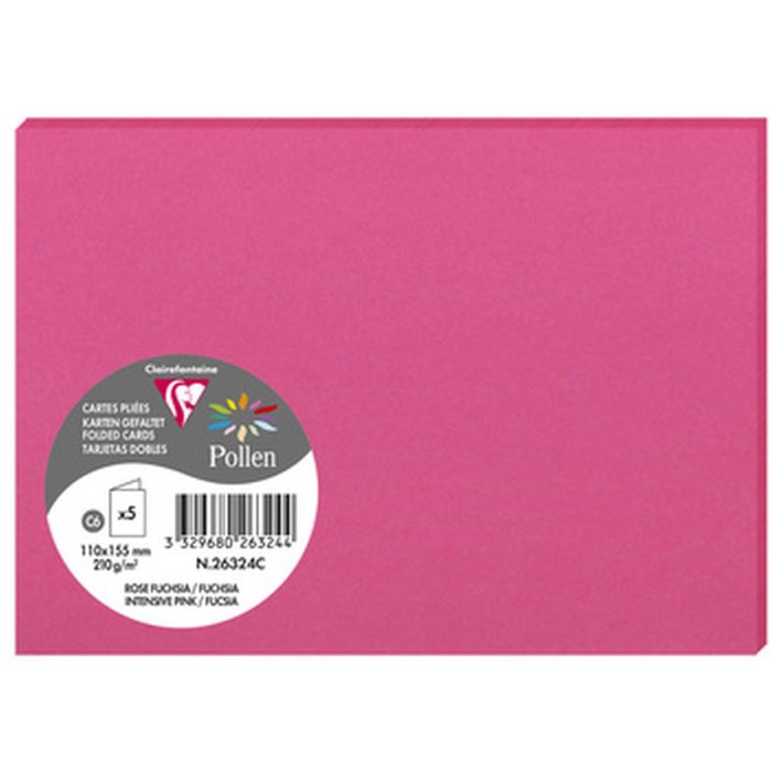 Pak van 5 dubbele kaarten Pollen van Clairefontaine, in kleur fuchsia, formaat 110x155 mm
