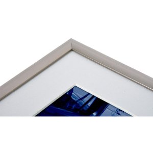Hoogwaardige aluminium fotolijst van Henzo, met afgeschuinde passepartout voor één foto 9x13 cm, halfrond profiel met gemiddelde breedte
