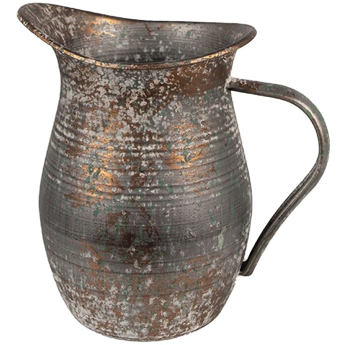Decoratieve kan, Clayre & Eef, grijs, 19x13x19 cm, vintage-look, metaal, landhuisstijl, patina-effect
