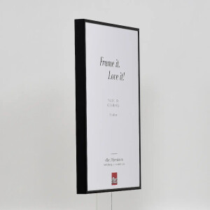 Elegant aluminium frame, hoogglanzend zwart, ontspiegeld glas, stevig Quadro profiel, MDF achterpaneel met standaard, kan flexibel opgehangen worden
