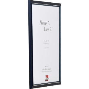 Houten fotolijst in subtiel donkerblauw met oplichtende zilveren rand, lijstbreedte: 2 cm