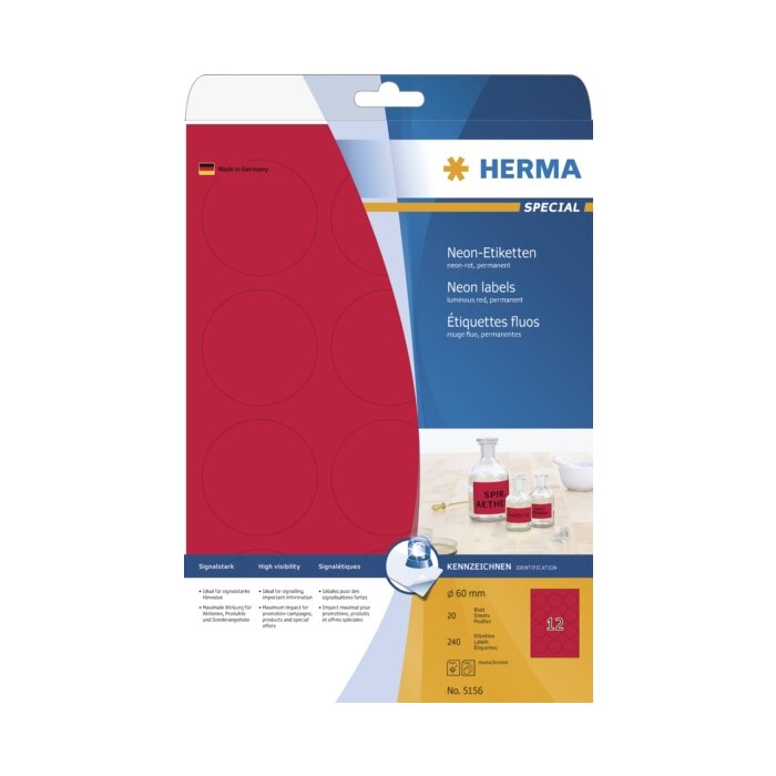 Etiketten a4 neon-rood ø 60 mm rond papier mat 240 st.