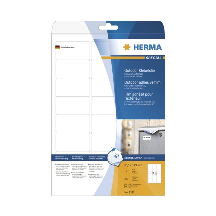 Etiketten a4 Outdoor kleeffolie wit 63,5x33,9 mm folie mat 240 st.