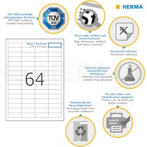 Etiketten Premium a4, wit 48,3x16,9 mm papier mat 6400 st.
