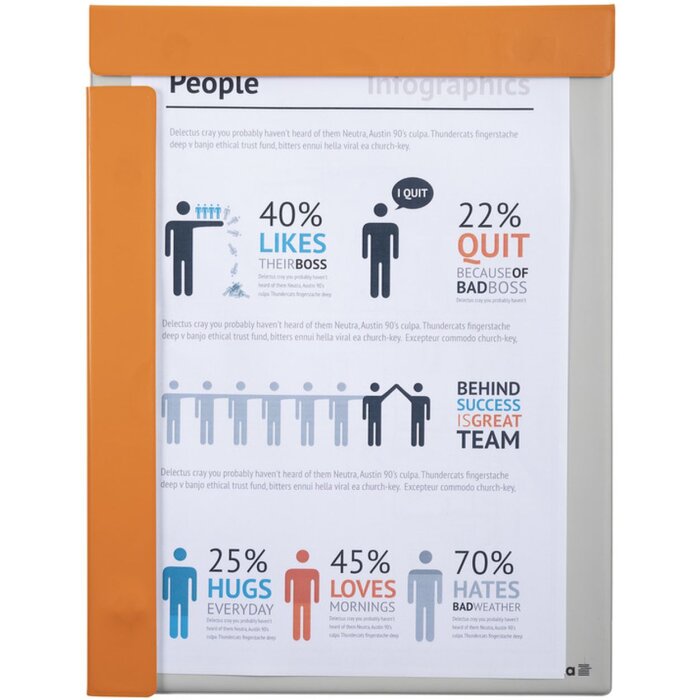 Magnetisch klembord voor A4, innovatieve magnetische flappen, stevige grip zonder perforeren of nieten, verticaal en horizontaal gebruik, hecht op metalen oppervlakken, geïntegreerde penhouder, oranje
