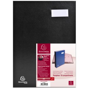 Handtekeningenmap van pu/pvc, 20 vakken, kleur zwart, hoogwaardige afwerking