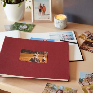 HNFD linnen schroefpostalbum blauw, 38x31 cm, 40 witte fotokartonnen pagina's, flexibele schroefbinding, open rug, hoogwaardige linnen omslag, ideaal voor persoonlijke fotopresentaties