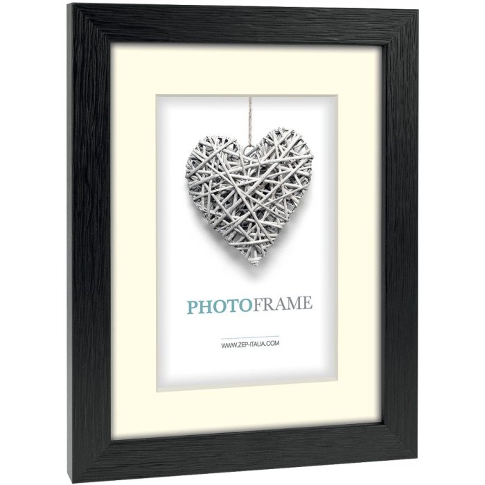 Houten fotolijst van ZEP, vlak profiel met lichte groefstructuur, geleverd met passe-partout voor een foto 20x30 cm