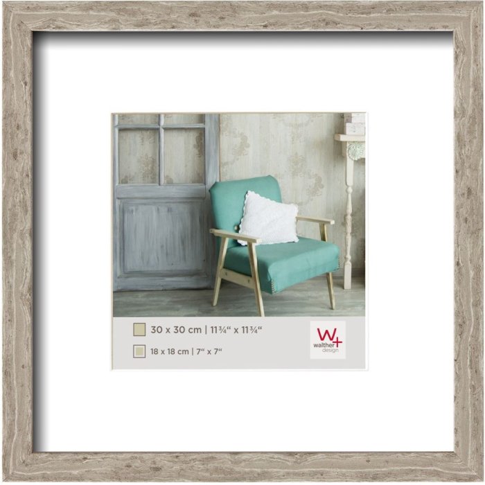 Walther Houten lijst, generfd houten blokprofiel, met afgeschuinde passepartout voor fotoformaat 18x18 cm