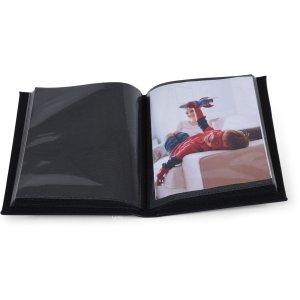 Henzo Stock album met kunstlederen omslag, zwarte binnenbladen