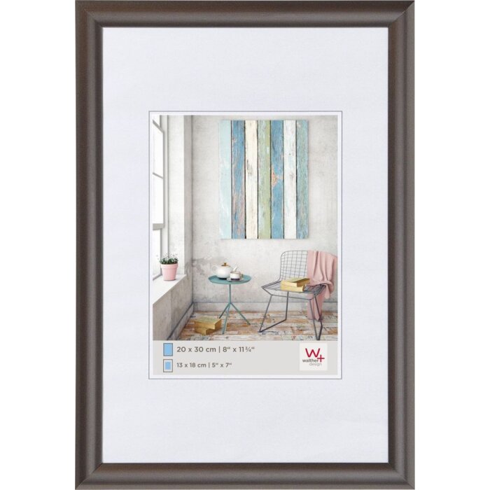 Kunststof lijst in staal, lijstmaat 20x30 cm, voor foto maat 13x18 cm, met standaard