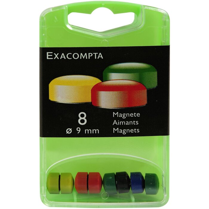 Doos van 8 magneten, Ø9mm, geassorteerde kleuren