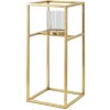 Elegant kaarshouder, 15x15x35 cm, ijzer en glas, goudkleurig, moderne kubusvormige kaarsholder met heldere glazen insteek, geometrische vormgeving, elegant en timeless voor verfijnde woonaccenten
