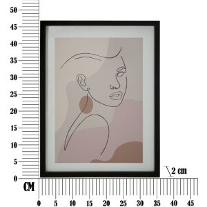 Kunstdruk 35x2x47 cm, MDF & glas, veelkleurig in beige & rozetinten, abstract portret van een vrouw, minimalistische stijl, zwarte lijst, modern & harmonieus