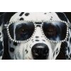 Muurschildering "Trap" met frame, 53x3x73?cm, metaal, dennenhout & canvas, zwart & wit, dalmatiër met capuchon & zonnebril, 3D toepassingen, urban & stijlvol
