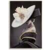 Muurschildering "Vienna Hat" met lijst, 62x4x92?cm, metaal, dennenhout & canvas, zwart & goud, vrouw met hoed & bloem, gestructureerd oppervlak met 3D-effect, elegant & vrouwelijk