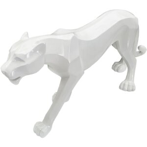 Mauro Ferretti panter sculptuur, 70x18x32,5 cm, witte polyresin figuur in geometrisch ontwerp met kubistische elementen, moderne blikvanger voor stijlvolle woonruimtes