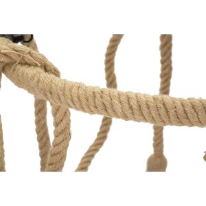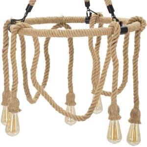 Plafondlamp touw cirkel, Ø 64x90 cm, ijzer & touw, kleur bruin/zwart, 6x E27 max. 20W, 220V, rustiek ontwerp met touw omwikkeld en metalen frame