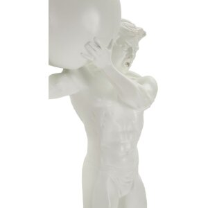 Sculptuur Atlas van polyresin, 18x12,5x50 cm, wit, atletische mannelijke figuur met bal, zeer gedetailleerd gemodelleerd, symbool van kracht en uithoudingsvermogen door Mauro Ferretti
