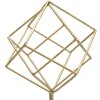 Mauro Ferretti sculptuur Cube, 16x18x52,5 cm, goudkleurig ijzer met wit marmeren voet, geometrisch ontwerp, modern en elegant, ideaal als stijlvolle blikvanger