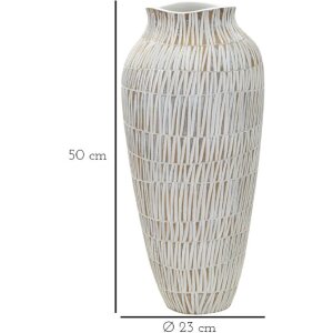 Polyresin vaas, Ø?23x50?cm, goud en wit, fijne lineaire gravure, modern en elegant, ideaal als vloer- of tafelvaas