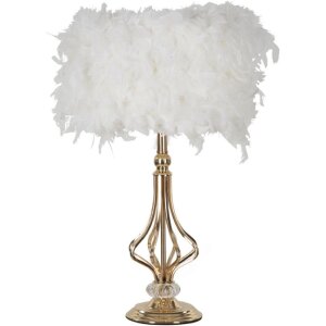 Tafellamp Tarty, Ø 25x54 cm, metaal/kunststof, kleur rozegoud, 1x E27 max. 40W, 220V, gouden sokkel met kristallelement en verenkleed voor romantisch glamour