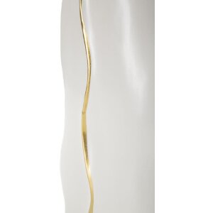 Vaas van keramiek 16x8x40 cm, wit met gouden decoratieve lijn, modern gebogen ontwerp, ideaal voor stijlvolle, elegante kameraccenten
