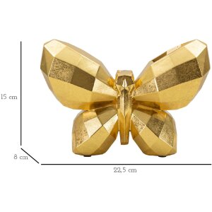 Vaas van polyresin, 22,5x8x15?cm, goudkleurig, vlindervorm in kubistische stijl, ideaal voor droogbloemen of als decoratief object
