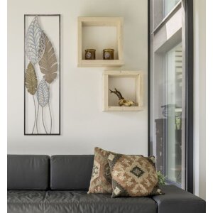 Wanddecoratie bladeren van ijzer en MDF, 30,5x2,5x99,5 cm, goud-zilver, artistiek ontworpen bladeren met 3D-structuur, elegant wandobject voor stijlvolle woon- en werkruimtes van Mauro Ferretti