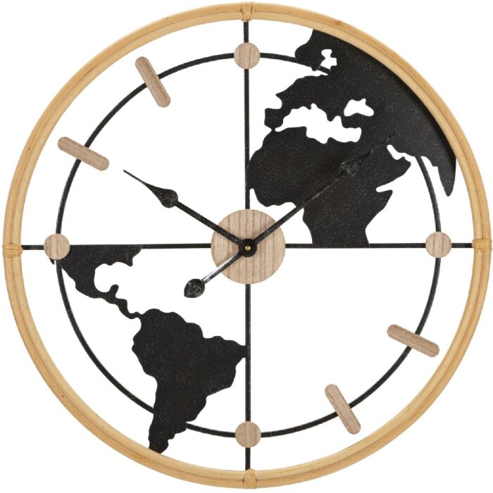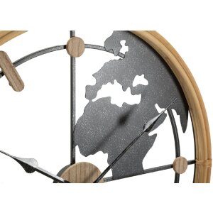 Mauro Ferretti wandklok wereld Ø 60x5 cm, materiaal: metaal en MDF, bruin en zwart, gedetailleerd wereldkaartmotief op de wijzerplaat, ideaal voor stijlvolle woonkamers en globetrotters