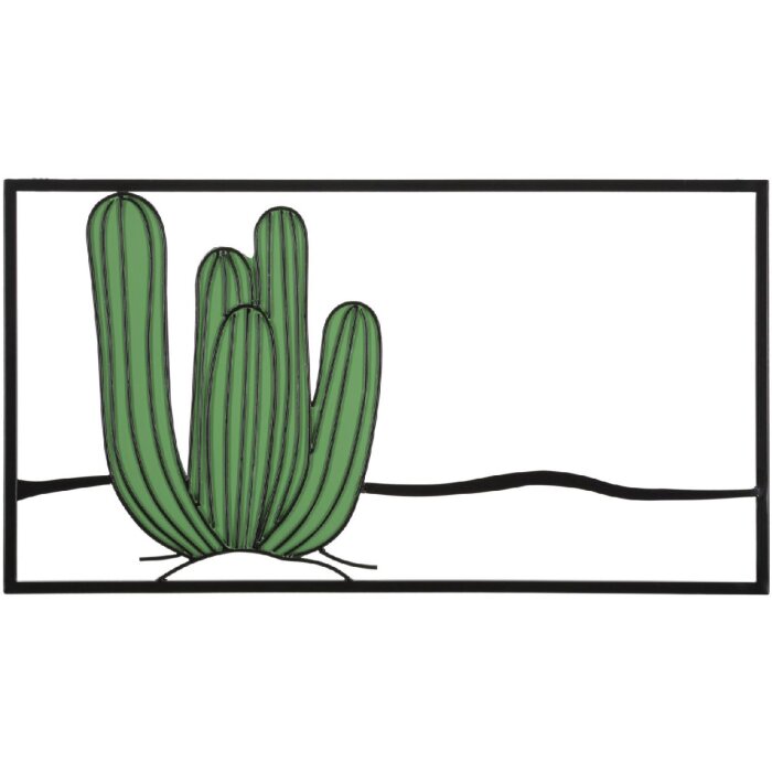 Wandpaneel met cactusmotief, 60x1,3x33?cm, metaal, groen & zwart, gestileerd woestijnlandschap met geometrisch ontwerp, modern & kleurrijk