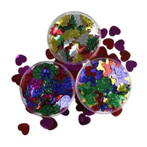 gekleurde confetti in een afsluitbare doos, ideaal voor het versieren van uw feesttafel, design: ballonnen