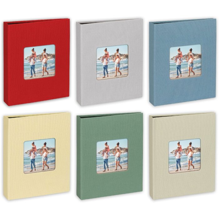 Inschuifalbum voor 36 foto's 15x20 cm, zwarte fotovakken, gestructureerde papieren omslag met uitgesneden foto, geassorteerde kleuren, geen kleurselectie