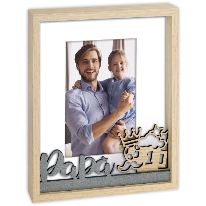 ZEP Danilo houten fotolijst, 10x15 cm, natuurlijk hout, "Papa" belettering, decoratieve elementen, om op te hangen of te staan, Vaderdag