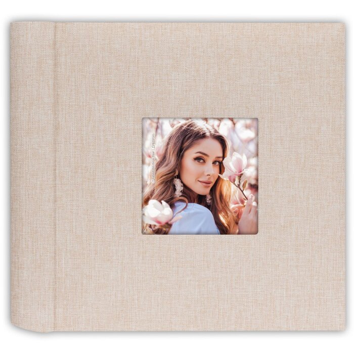 Slip-in album Aura beige, linnen cover, ruimte voor 200 foto's 10x15 cm, labelvelden, stansvorm voor persoonlijke coverfoto, elegant ontwerp