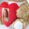Kattenknuffel, zacht, hartvormig fotolijstje, 16x13x23 cm, foto 3,5x4,5 cm, cadeauidee, lief design