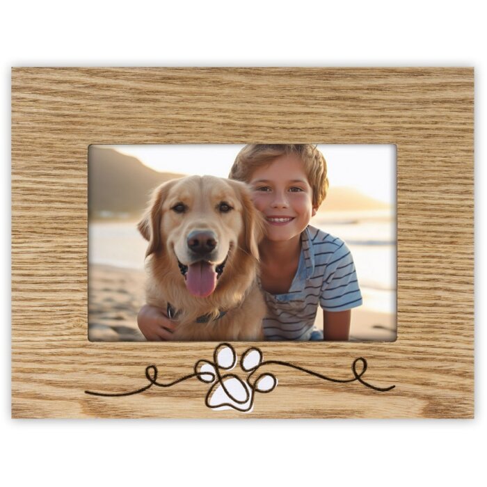 Houten fotolijst 10x15 cm, natuurlijke houtlook, decoratief pootmotief, duurzaam en stevig, ideaal voor foto's van huisdieren en souvenirs